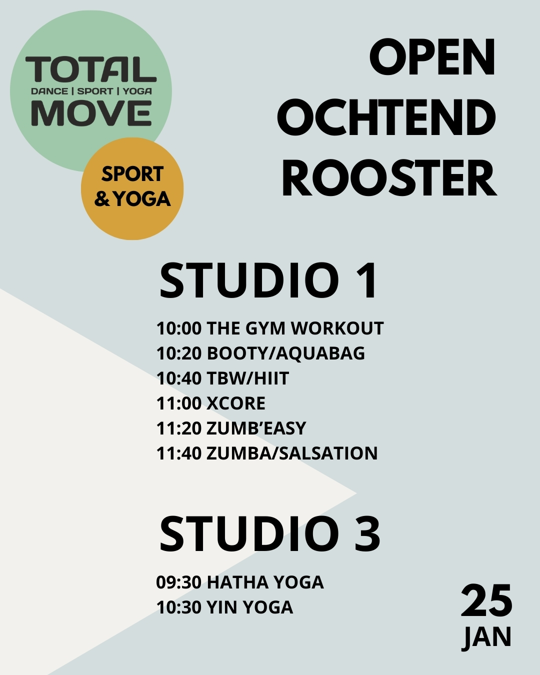 Op zondag 25 januari organiseren wij een open ochtend, waar je verschillende lessen kunt komen uitproberen. Al eerder een les proberen? Boek dan nu al je eerste gratis proefles.